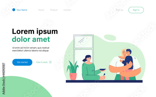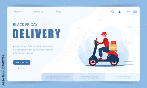 People running for sale with big discounts. Men and women run to the store for promo sale. Vector web site design template. Landing page website concept illustration.