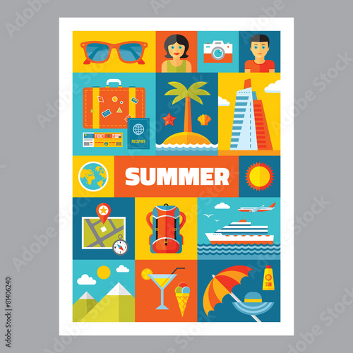 People sit in airplane while flying vector illustration set. Air plane cabin interior. Flight attendant explains air safety rules. Landscape view from aircraft window.