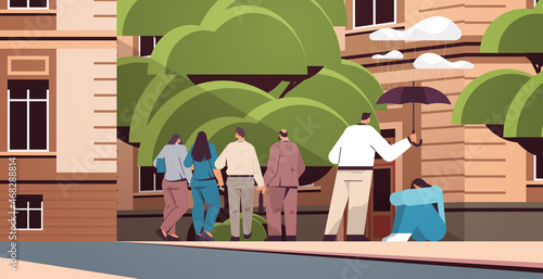 People sort trash for recycle concept vector posters set. Man and woman separate grabage in different waste bin. Plastic bottle, organic waste, paper, glass.