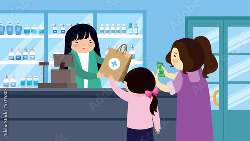 People standing in line for Covid-19 vaccine injection, flat vector illustration. Coronavirus vaccination queue. Corona virus spread prevention. Immunization campaign.