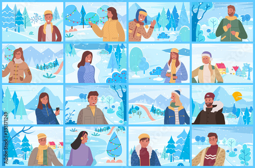 People swim in public swimming pool concept vector illustration set. Sport swimming pool interior. Man and woman swim in water. Girl taking shower after swimming.