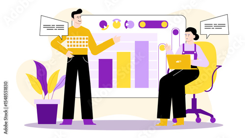 People speaking different languages talking to each other using real time voice translator on smartphone, flat vector illustration. Live or real time speech translation.
