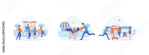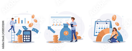 People training and riding bike using fitness and health tracking mobile apps, flat vector isometric illustration. Online fitness tracker. Healthy nutrition and lifestyle.