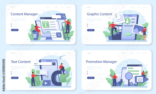 People using social networks to sell or promote business, flat vector isolated illustration. SMM, social media marketing scene set. Digital internet marketing, brand management.