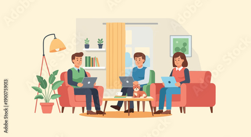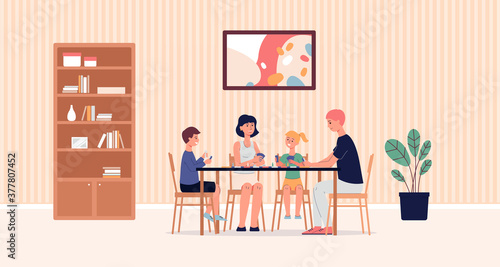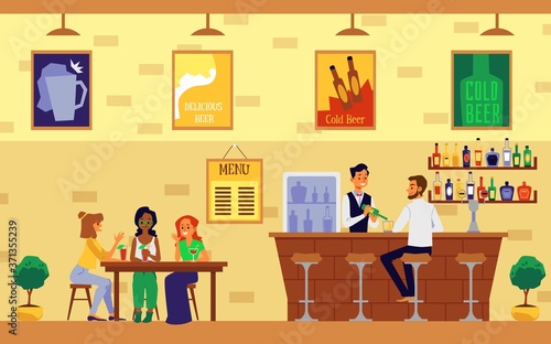 People wait in line on reception in veterinary clinic concept vector illustration. Vet hospital interior. Black veterinarian doctor examing cat on a table. Man and woman with animals.