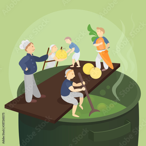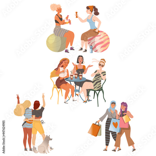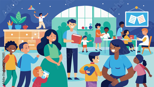 People watching movie at cinema theater and sitting in chairs in auditorium. Concept vector hand drawn illustration. Couple, family with kids, man and women watch film and eat popcorn.
