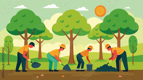 People work on a farm planting fruit tree. Farmer, agriculture field, harvest crop. Concept illustration. Vector web site design template. Landing page website illustration