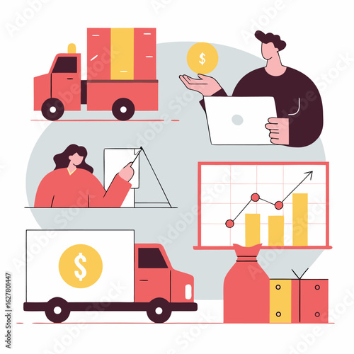 Deposit interest, loan credit commission percent vector illustration set isolated on white background. Interest rates and percentage of income, growth, increase concept for web banner, website page.