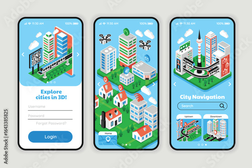 Commercial photography of perfume bottle and clothes. Mobile app screens. Vector banner template for website and mobile development. Web site and UI design illustration.