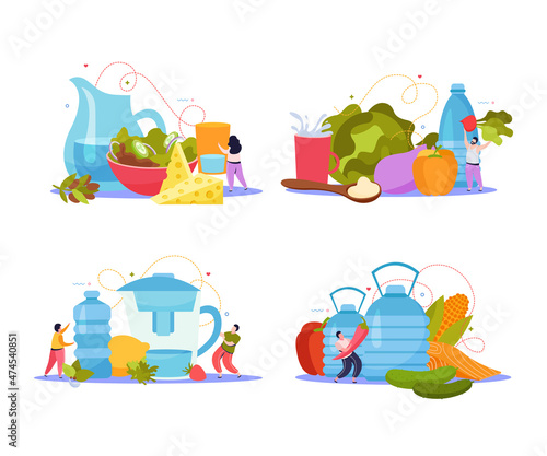 Perfume set, flat vector isolated illustration. Different perfume bottles with heart, gift box, balloon, text. Seasonal and holiday sale and discounts promo banners for perfume store.