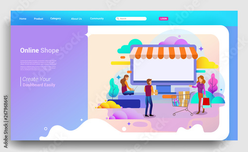 Pet birthday vector website template, web page and landing page design for website and mobile site development. Cat and dog sitting next to huge birthday cake with candles. Pet party concept.