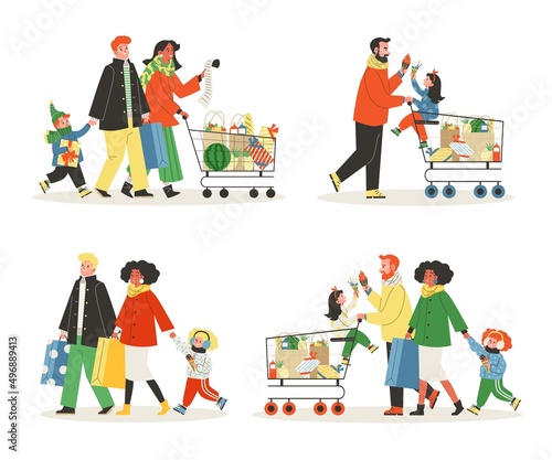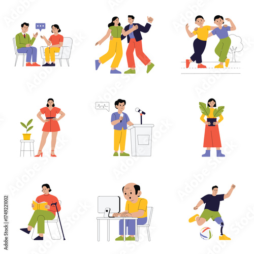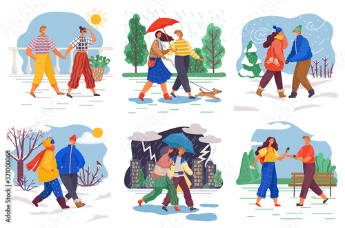 Pet care set, vector flat isolated illustration. Animal shelter, volunteering with cats and dogs, walking dogs, pet feeding, homeless and stray pets adoption, veterinary care.