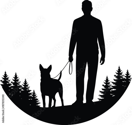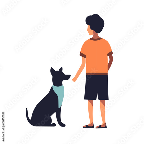 Pet owner with dog vector icon. Male puppy lover standing isolated on white background. Character and canine portrait