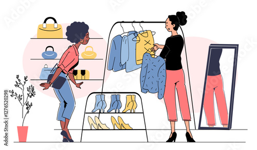 Pet shelter vector concept flat style design illustration. Mother with her son adopting cute dog from animal shelter or rescue center. Homeless pet adoption.