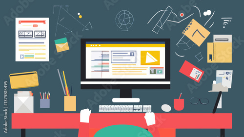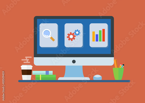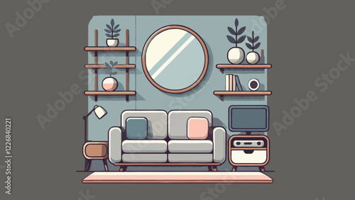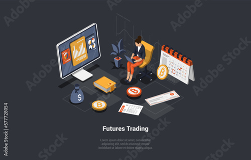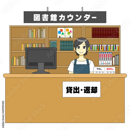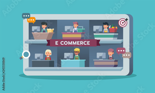 Pet shop cashbox vector illustration. Young saleswoman standing at counter, food for birds, dogs and cats on shelves, pets supplies, flat style design elements.