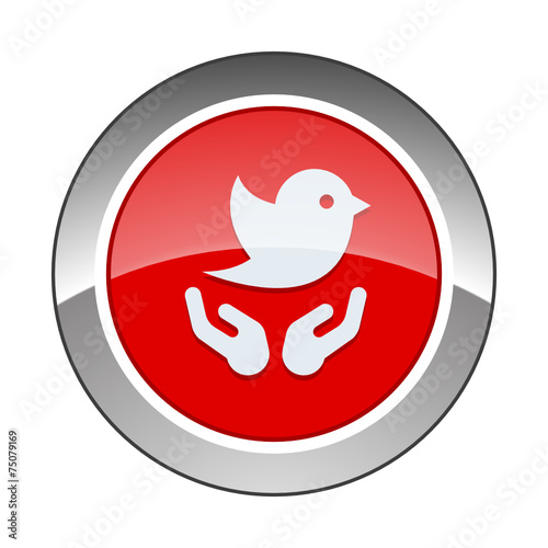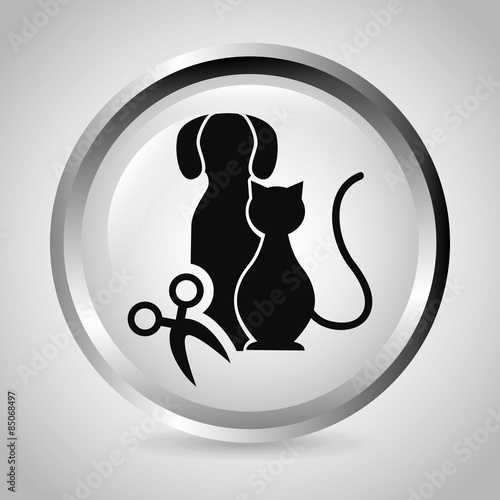 Dog, cat and parrot silhouettes in red circle frame with heart shape. Vector paper art illustration. Paper cut veterinary pet shop logo design template.