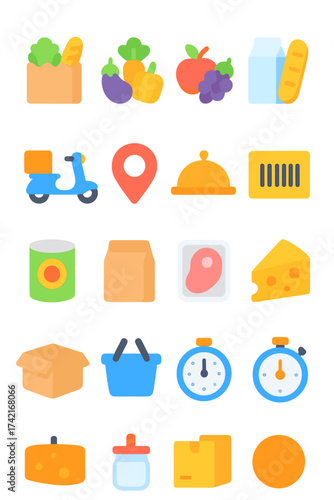 Pet store icon set. Vector flat isometric illustration of pet food supplies and treats, toys, collar, bedding accessories, kennels, pet carries, grooming kits, cat litter box, bowl and scratching post