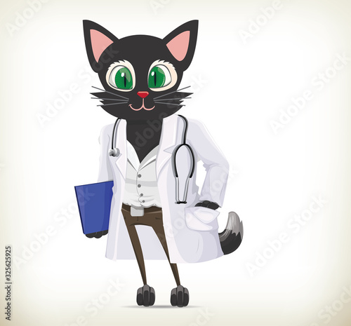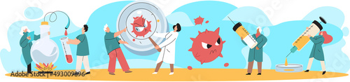 Pet vaccination paper 3d vector poster template with veterinarian doctor hand in rubber glove holding syringe and happy cute hugging puppy, cat characters illustration over pills background