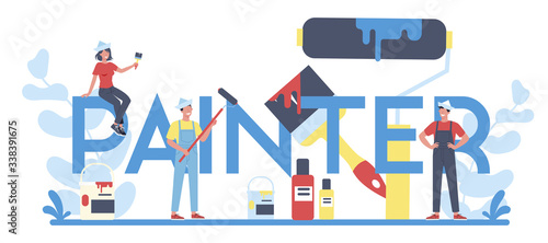 Pets typography vector banner template. Happy people with dogs. Men, women, kids walking, feeding, training their puppies, visiting vet. Homeless pet adoption, dog training classes, animal care.
