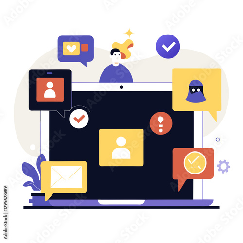 Phone network vector. Social media app. Smart technology for people communication on internet. Cellphone screen with virtual profile