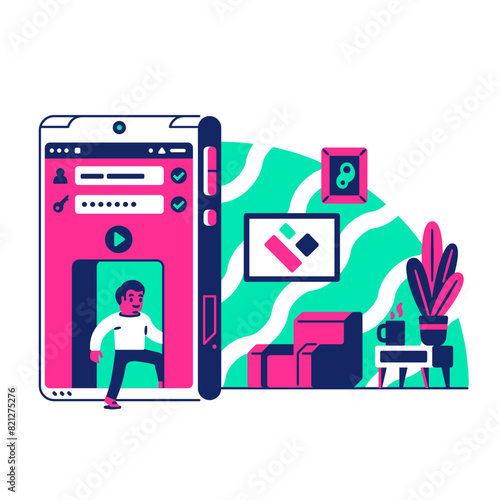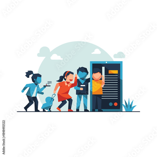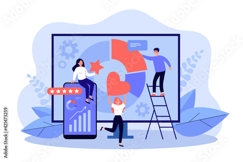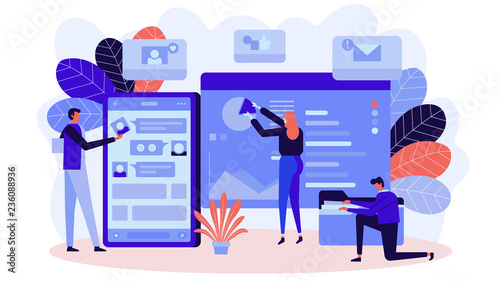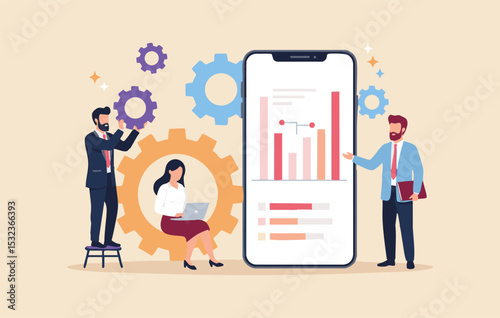 Phone repair service concept vector illustration. Mobile phone with broken screen and open chip circuit. Technician men fix smartphone.