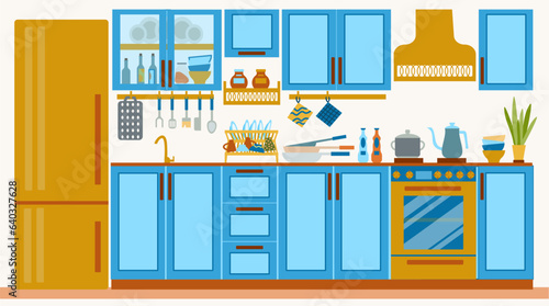 Photo frame on table flat vector. Picture with grandparent, children, family portrait on shelf. Home apartment design interior. Memory photography illustration