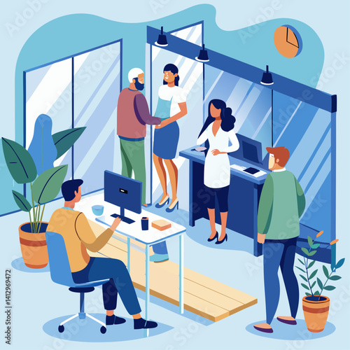 Photographer shooting happy loving couple and family characters with professional camera in studio, flat vector illustration. Photographer profession. Family photoshoot.