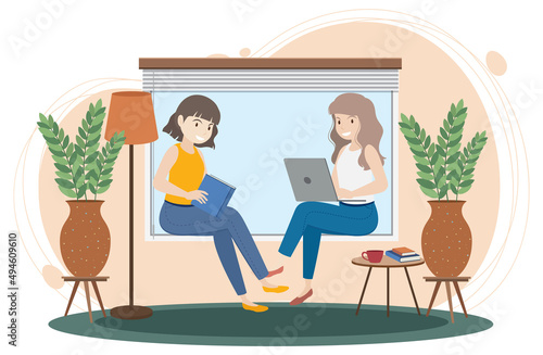 Vector illustration of professional body piercer performing piercing. Woman getting piercing flat style design element.