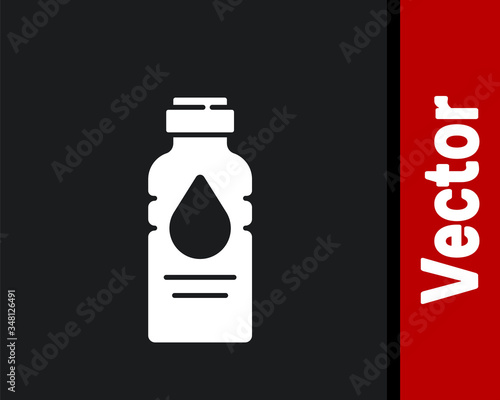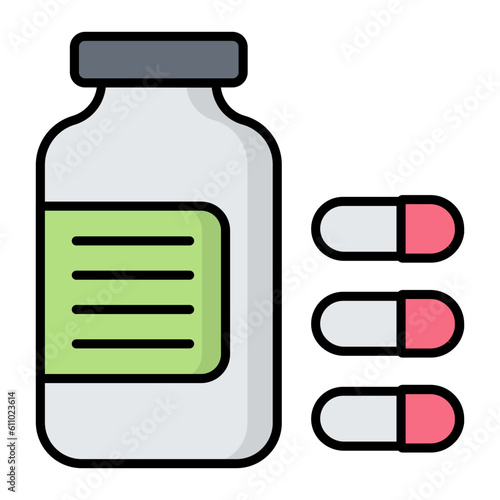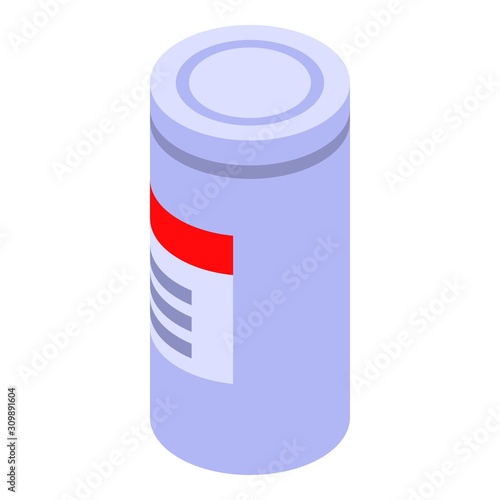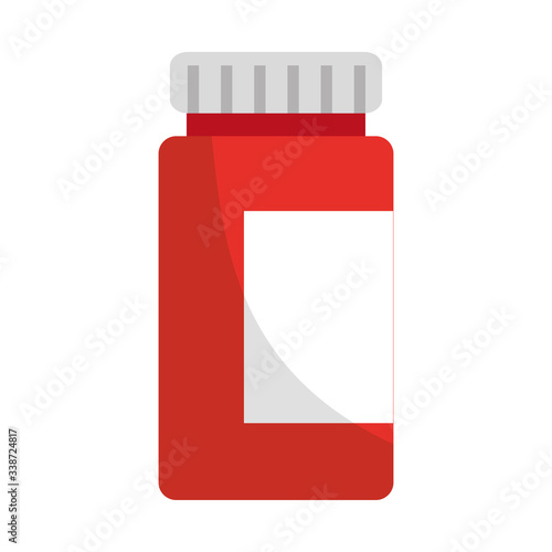 Pills bottle icon. Vitamin jar vector. Supplement plastic container isolated on white. Medicine, drugstore or veterinarian pet shop symbol