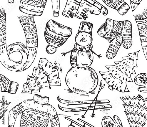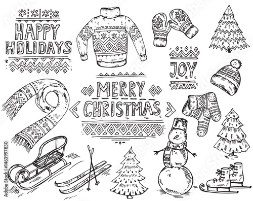 Pizza set. Vector ink hand drawn illustration isolated on white background. Pizzaiolo, pizza ingredients and kitchen utensils and oven.