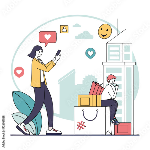 Pizza time, vector flat illustration. Happy couple holding huge box with delicious italian food. Fast food restaurant pizza order concept for web banner, website page etc.