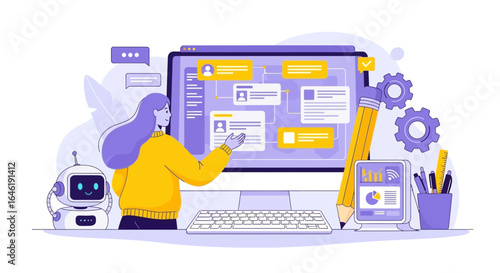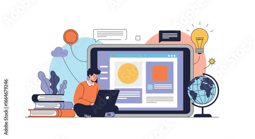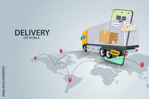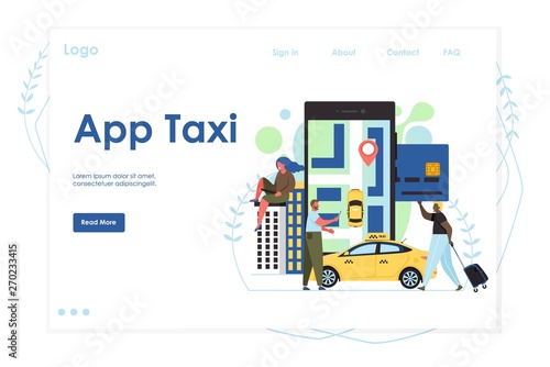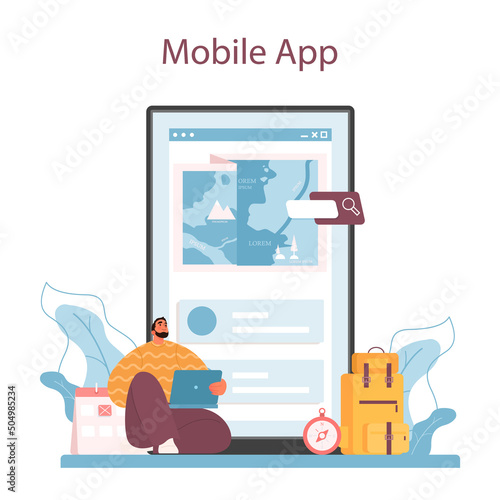 Plan your trip vector website template, web page and landing page design for website and mobile site development. Tourist traveling using his smartphone with previously saved favorite places on map.