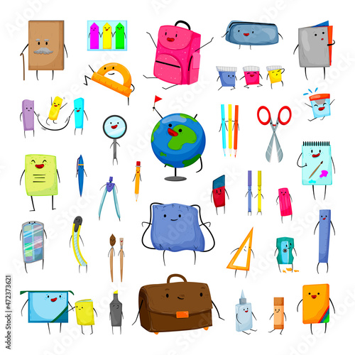 Planetarium, space museum scene set, flat vector illustration. People looking at night sky, solar system planets, stars, celestial bodies through telescope, listening to guide. Astronomy education.