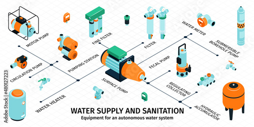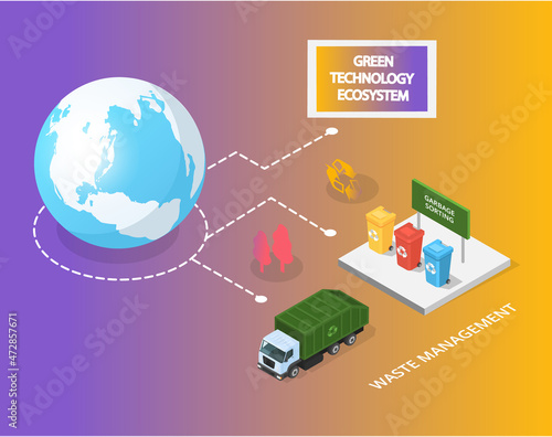 Plastic recycling process scheme, vector isometric illustration. Reducing pollution and waste, saving the Earth and environment with recycling technologies.