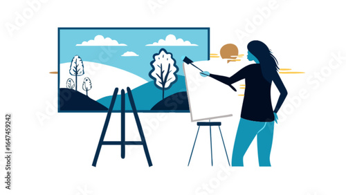 Micro plastic surgeons doing pencil marks on huge woman body, vector illustration. Plastic surgery, body contouring treatment, correction concept for web banner, website page etc.