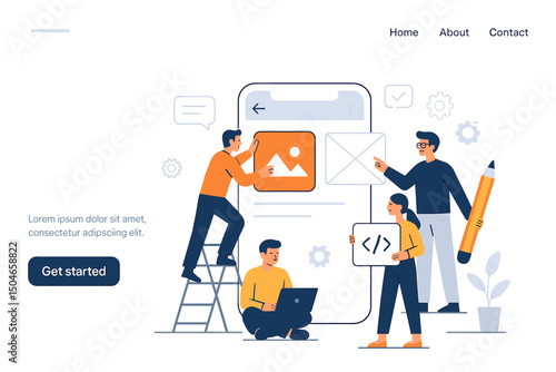 Male characters fixing broken sink drain, heating radiator, washing machine, oven, air conditioner, flat vector illustration. Plumber, electrician, repairman, home appliance repair technician services