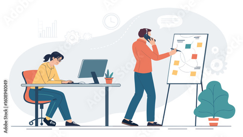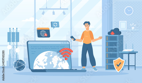Plumber repairing or installing water filtration system at home vector illustration. Repairman character doing sanitary work eliminating leakage on kitchen. House engineering networks servicing