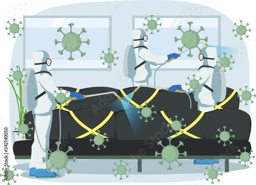Vector illustration of pipe fitter fixing leaking water pipes, working electrician and woodcutter. Plumbing and electric company services flat style design elements.