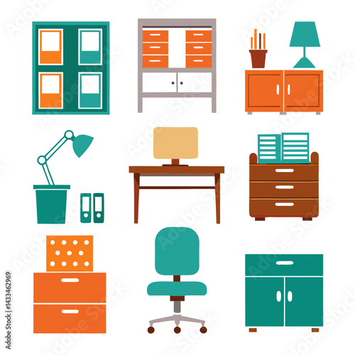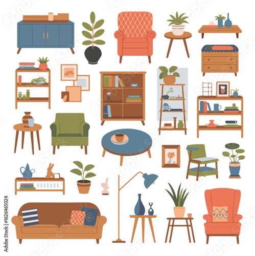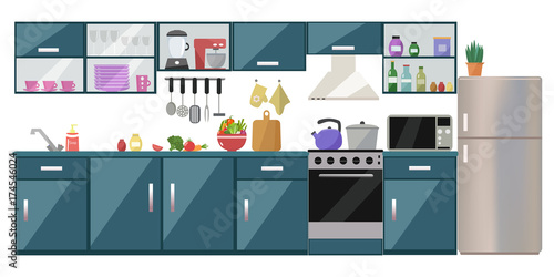 Vector set of posters, banners with living room, kitchen interior. Plumbing, moving and delivery company services flat style design elements.