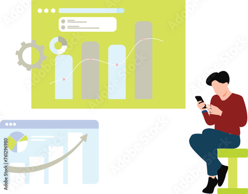 Vector illustration of plumber repairing sink in kitchen. Plumbing flat style design element.