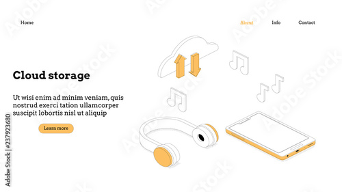 Podcast landing page design, website banner template set, flat vector illustration. Radio host. Woman with microphone recording audio podcast. Online radio, podcasting, broadcasting.