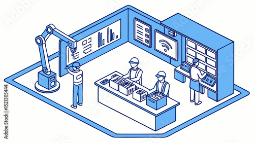 Vector isometric illustration of poker player man playing online poker game with poker bot. Man vs machine poker robot concept design element.