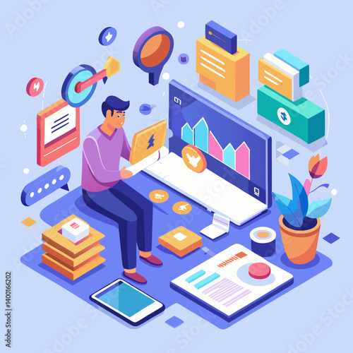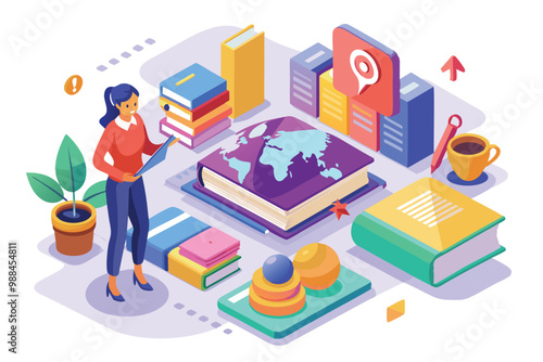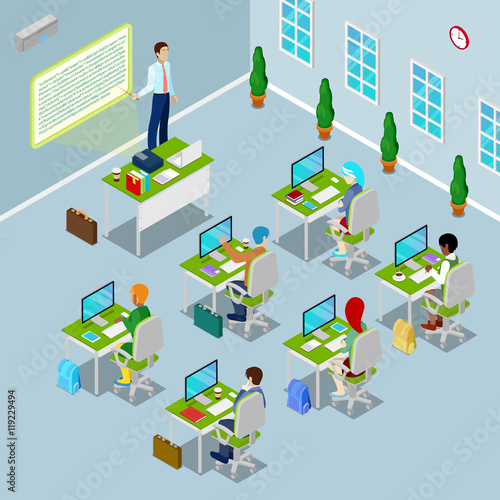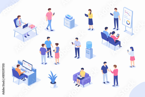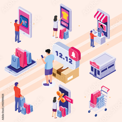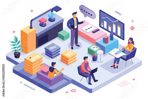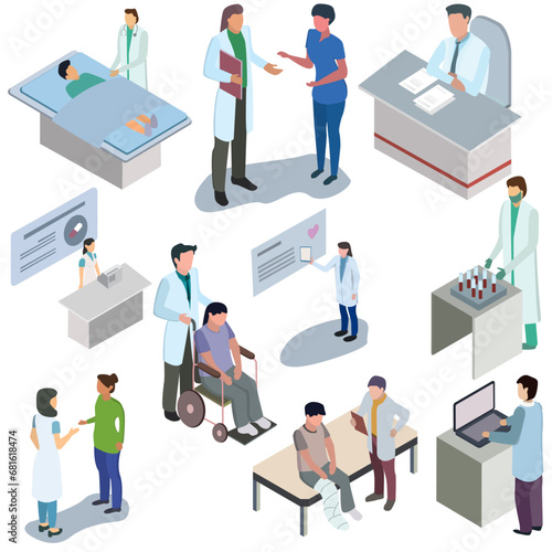 Political election and debates infographic isometric elements. Presidential candidates, tv studio, camera operator, voting cabin, poll results charts.