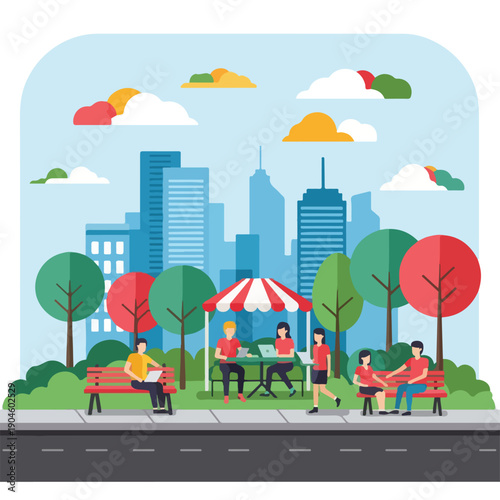 Pool party set of vector illustration. Summer vacation at poolside. Happy people swim in swiming pool, drink and dance. Pool party with DJ.