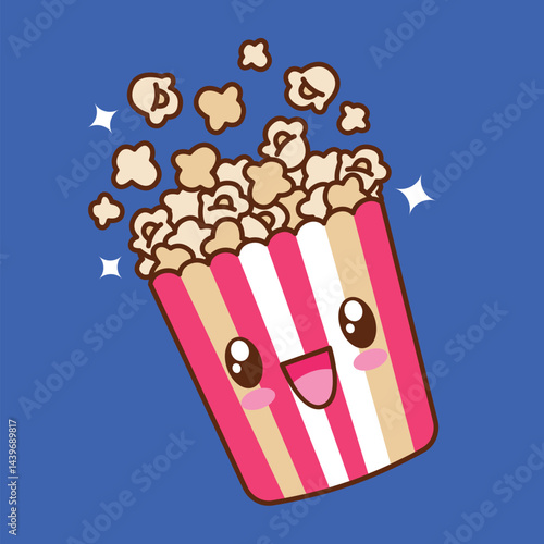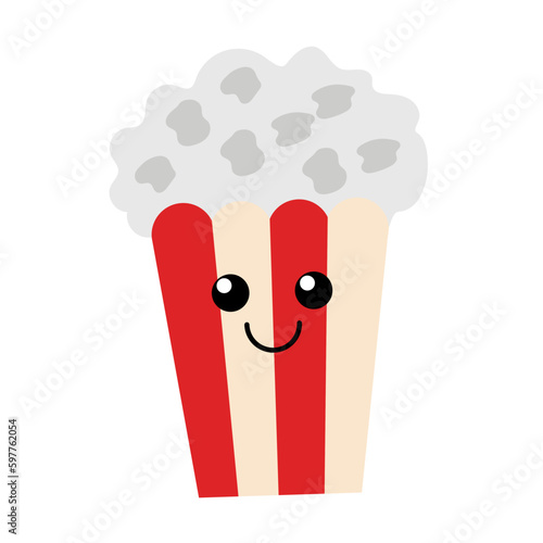 Pop corn box cartoon vector character. Funny popcorn box icon isolated. Cute smile snack packaging emoticon on white background. Kawaii fastfood pack illustration