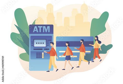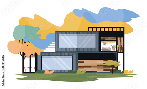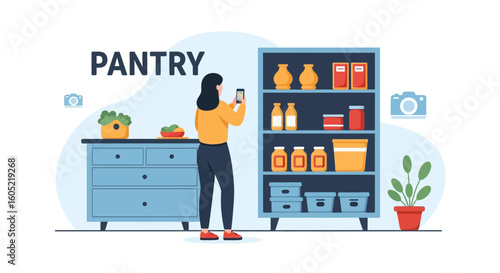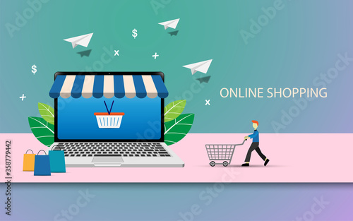Vector illustration of cinema waiting hall and cafe with salesgirl. Popcorn concept design element in flat style.