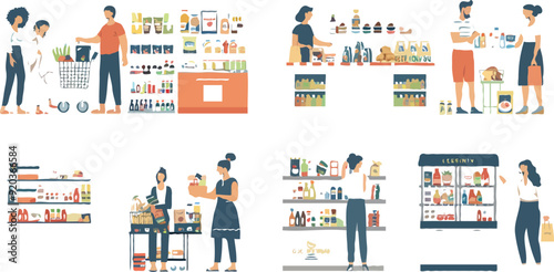 Post office concept vector posters. Delivery service, postman, courier delivers mail to mailbox. People work in warehouse. Woman gives a parcel to customer in post office.