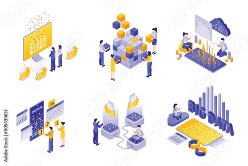 Preschool learning kids games isometric icon set, flat vector isolated illustration. Children playing math education and board games. Fun math worksheets, quizzes, number puzzles.