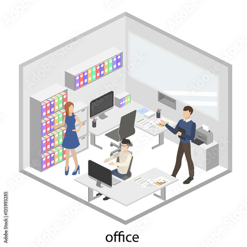 Presidential candidates debate in TV show studio. Political debate and democracy concept vector illustration in isometric style. Election poll results.