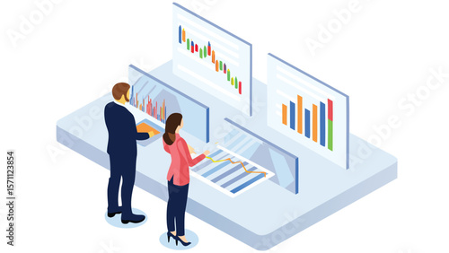 Presidential election exit poll results on a screen. Man and woman politician candidates vector illustration in isometric style. Democracy election concept.